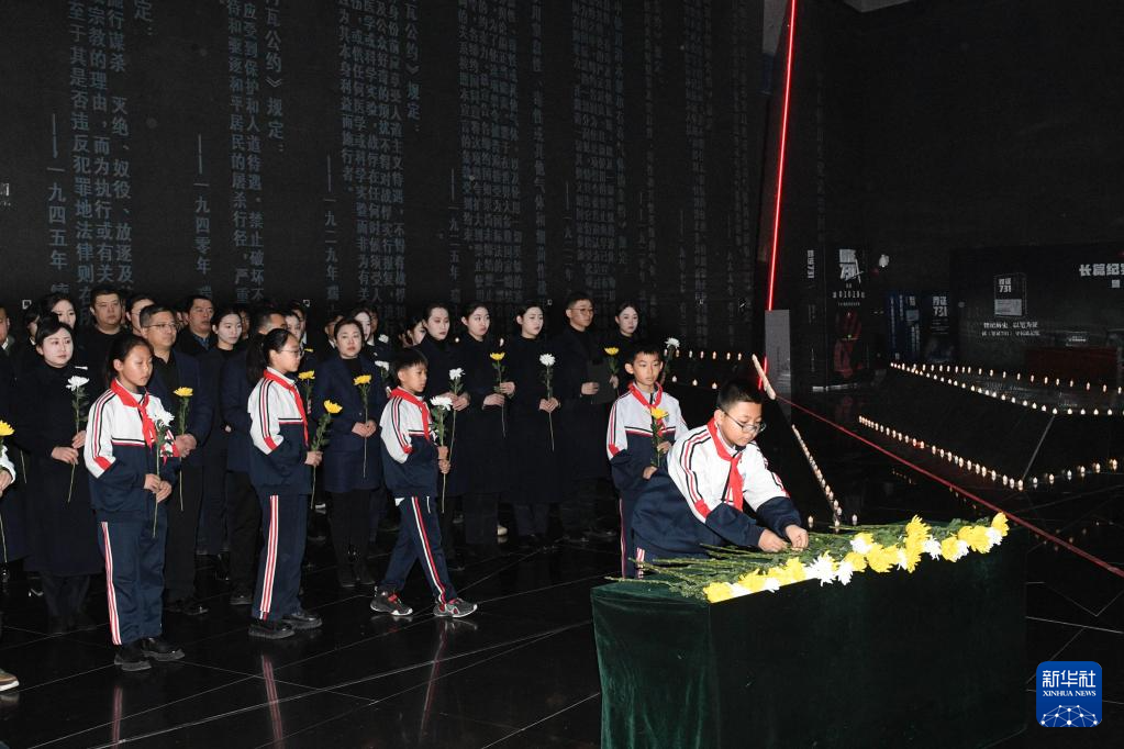 12月13日,人们在黑龙江哈尔滨东北烈士纪念馆参加悼念活动。新华社发(刘洋摄)