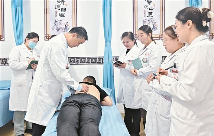 12月9日,河南省援疆医生陈书强(左二)在十三师红山农场医院中医科为年轻医生传授针灸技术。兵团日报常驻记者 王晓燕 通讯员 王璇 摄