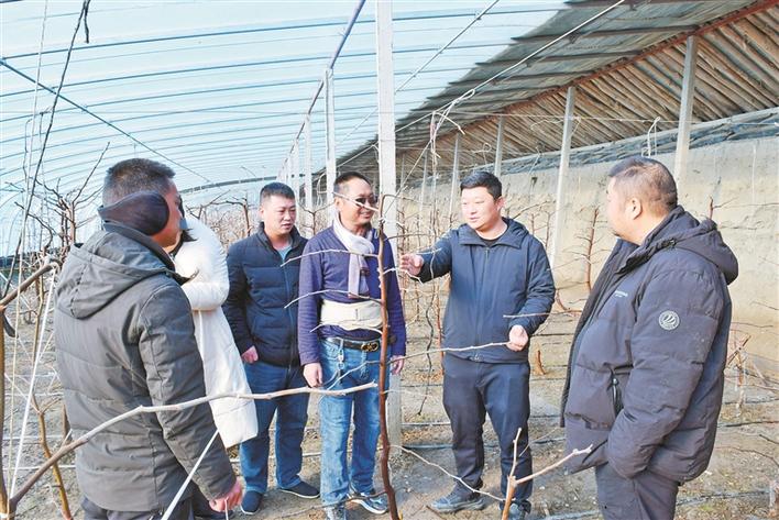 12月2日,在二师二十二团三连冬枣大棚内,胡世佳(右二)为职工讲解冬枣修剪技术。王紫嫣 摄