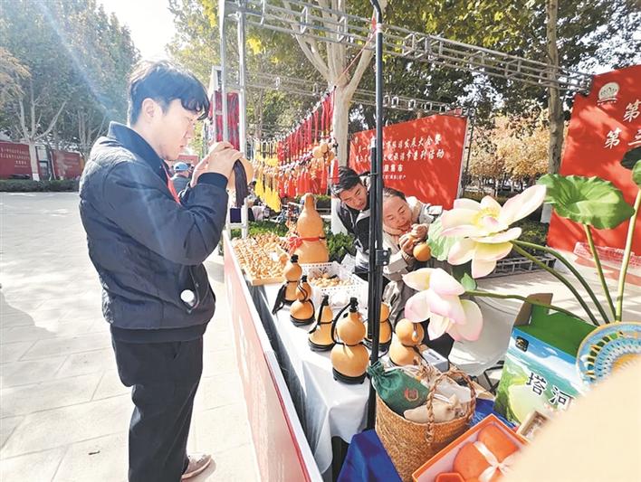 在第三届塔里木文化旅游节活动现场,游客购买文创产品(资料图片)。孙小月 摄