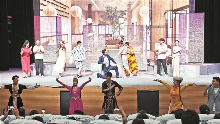 这种“以小见大、以情动人”的探索,还在戏剧舞台上结出了硕果。今年8月,新疆杂话剧《兵团人家2》在十二师文体中心连演多场,场场座无虚席,笑声与掌声交织。作为热门前作的续篇,该剧将镜头对准中国(新疆)自由贸易试验区建设背景下的一个普通兵团职工家庭,通过这家人的温情故事,生动展现新时代兵团人投身改革发展浪潮的精神风貌。