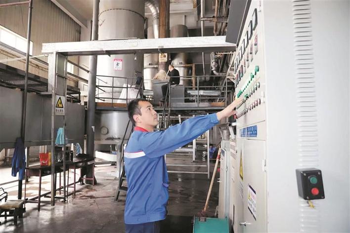 12月20日,在新疆一和生物股份有限公司生产车间,员工郭艳峰在检查厂房设备运行情况。张萱 摄