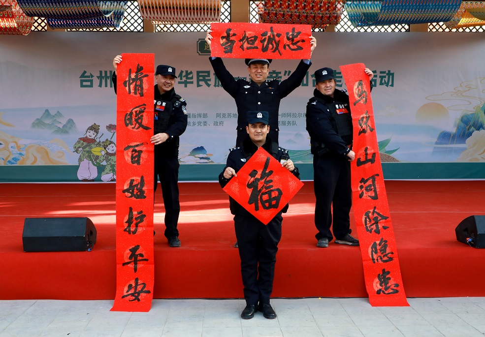 一师阿拉尔市执勤民警喜获春联。贾雪娇 摄
