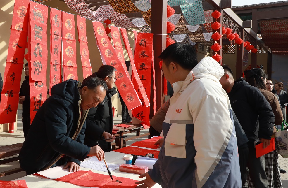文化服务不止于舞台。1月16日,师市美术家协会代表在托喀依乡纳格热哈纳村为村民挥毫送春联。村民古丽加马丽·吾术尔说:“拿到春联既开心又感受到心意,书法写得真好,我也想学。”
