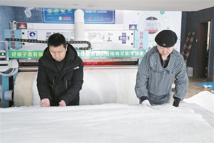 加工网套、包装成品……1月26日,在十三师火箭农场睡眠卫士网套加工店里,机器轰鸣,工人忙碌。“我们的棉被选用的是本地产的优质长绒棉,不仅蓬松度高、保暖性强,透气性也好。”该店负责人张爱菊表示,这些棉被很畅销,深受消费者青睐。“入冬以来,我们店已经接到100多份订单了。”张爱菊说。和棉被一样,保暖服饰的需求量也比较大,要提前备货。