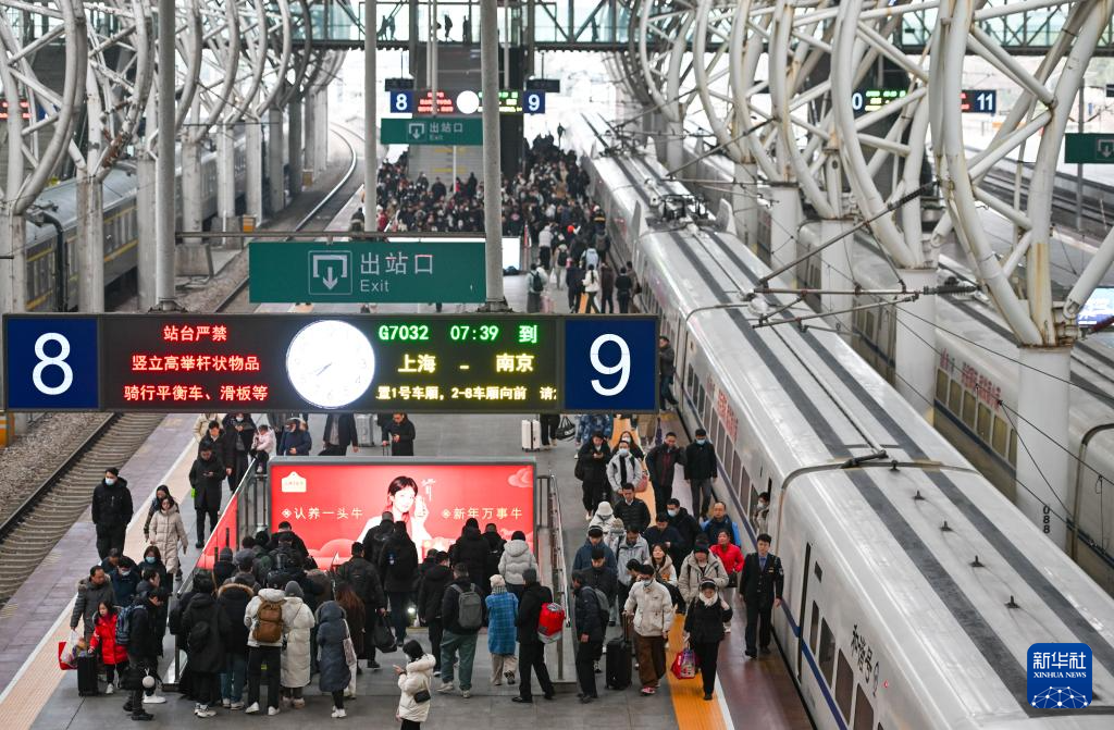 2月2日,旅客抵达南京火车站后下车出站。新华社发(杨素平摄)