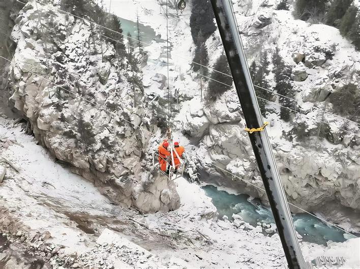 四师电力有限责任公司的电力工人对110千伏东山线进行导线抢修作业,及时消除线路缺陷,全力保障节日期间电网安全稳定运行(摄于1月30日)。季晓燕 张志鹏 摄