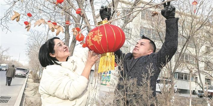 在二师铁门关市迎宾小区内,新疆铁门关市华居万家物业管理有限公司经理海俊屏踩着人字梯,将灯笼固定在小区东边的杨树上。灯笼高低错落、疏密有致,微风拂过,宛如枝头结出的红色“果实”。进入2026年腊月以来,她和同事们多了一项“任务”——为小区营造节日氛围。“今年装点小区不再追求整齐划一,而是更贴近生活,更显自然。”海俊屏说。