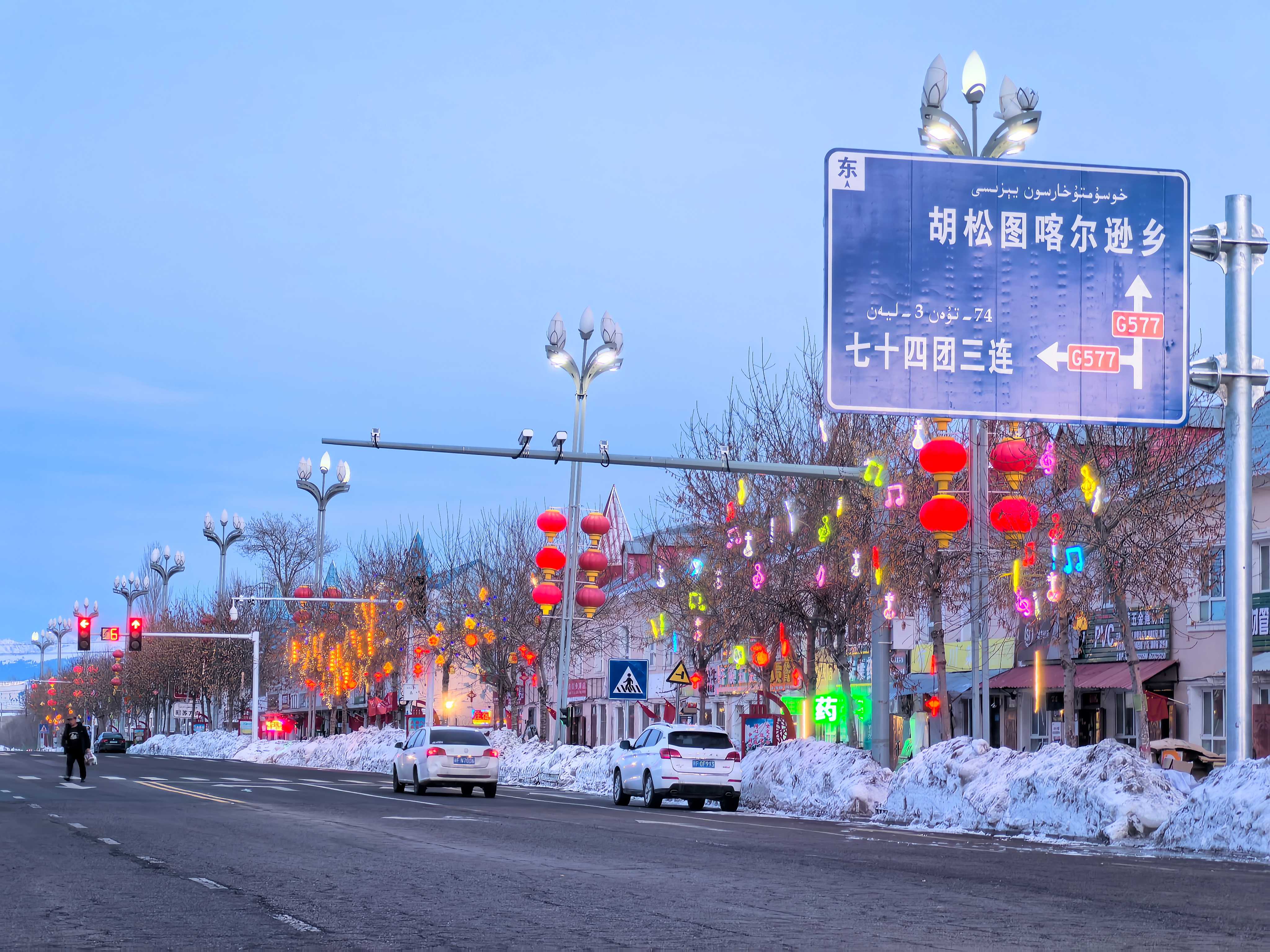 如今的七十四团,发展有声有色,民生有暖有光。一座座特色建筑整齐林立,宛若置身童话般的坡马小镇,边关景如画,团场业兴旺,百姓乐安康。