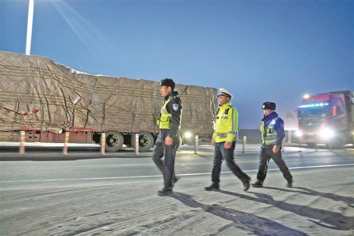 二师乌鲁克垦区公安局交通管理大队米兰中队民警宋生明和同事迎着寒风抵达园区,来不及揉搓冻红的双手,立刻投入隐患排查工作中。在一辆满载天然气的罐车前,宋生明蹲下身仔细检查轮胎纹路,反复确认罐体阀门无泄漏,才放心。此时,司机王师傅正靠着车门吃早饭,十几个小时的长途奔波,让他满脸疲惫。宋生明轻声上前叮嘱:“师傅,这里不能停危险化学品车,前面有专门的停放区域。麻烦您吃完饭后尽快驶离,但千万不能疲劳驾驶。”王师傅连连道谢:“有你们在,我们跑长途的心里才踏实!”