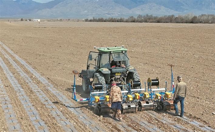 “今年我种植了80亩棉花套种孜然,不到6小时就全部播完,效率很高,既省时又省力。”三十三团十一连职工赵平站在田埂上,看着高效运转的农机说。