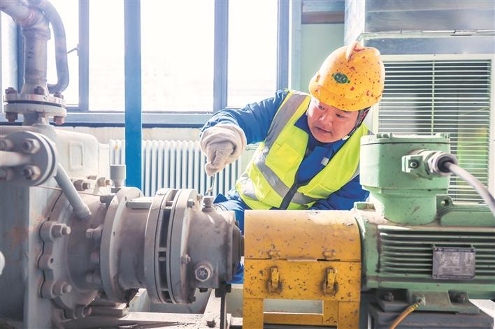 在新冀能源化工有限公司生产现场,25岁的技术员李康宁正专注地监测设备运行数据,优化生产工艺流程。