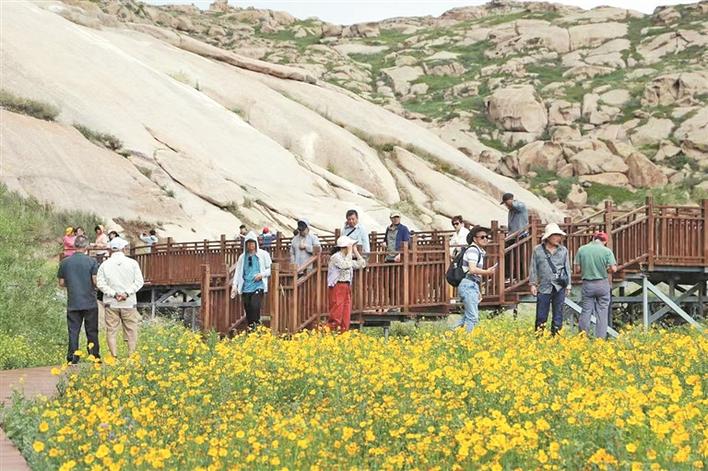 依托怪石峪独特的野花资源与奇石景观,五师双河市精准发力,推出“赏花+徒步+摄影”定制路线,联动周边团场协同发展乡村旅游,推动“一花一景”向“一景一业”转变。八十四团是前往怪石峪景区的必经之地,随着景区知名度不断提升,途经该团的游客也日益增多,直接带动了沿线农家乐、民宿产业的蓬勃发展,职工群众在家门口就能吃上“旅游饭”。
