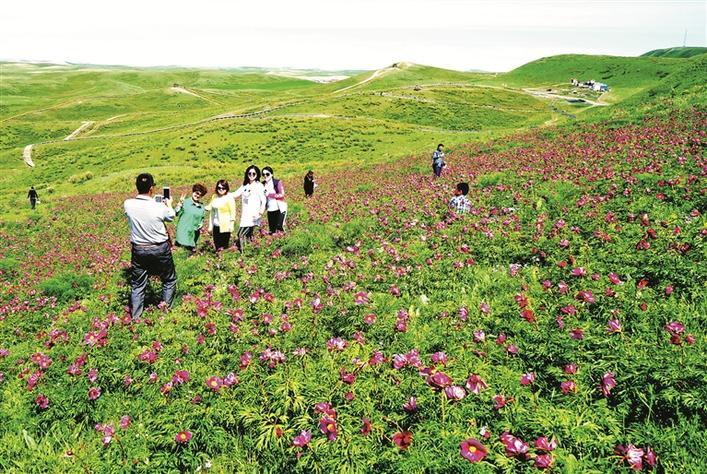 游客在九师一六一团芍药谷景区赏花拍照(资料图片)。赵海嵘 摄