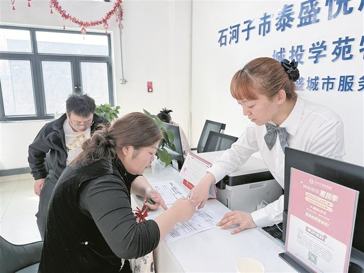 3月31日,在八师石河子市泰盛悦服物业有限责任公司城投学苑物业服务中心,工作人员在为居民讲解装修申报流程、注意事项及安全管理要求。兵团日报常驻记者 李秀 通讯员 郭凯丽 摄