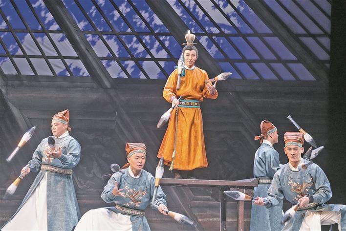 杂技剧《唐古百戏》剧照(摄于3月29日)。兵团日报社全媒体记者 阿热依·热依哈巴提 摄