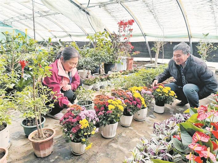 4月1日,三师四十四团十三连的花卉大棚里,消费者在选购花卉。帕夏古·克力木 摄