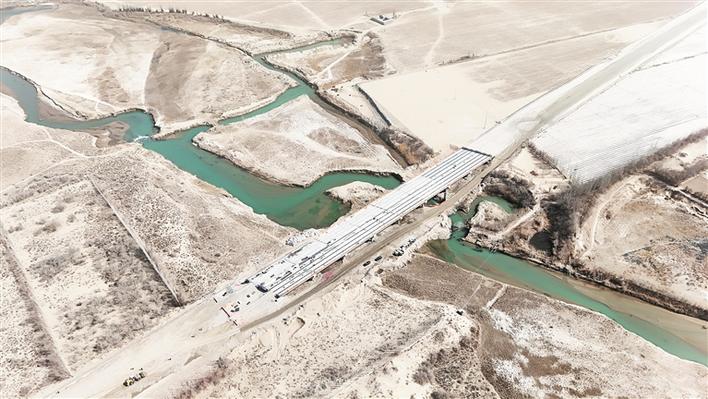4月2日,在十四师昆玉市—墨玉县公路项目拉里昆湿地大桥施工现场,建设者抢抓施工黄金期加快工程建设。该项目建成后将进一步完善区域路网,助力兵地融合发展。古力米拉·亚力坤 王婕润 摄