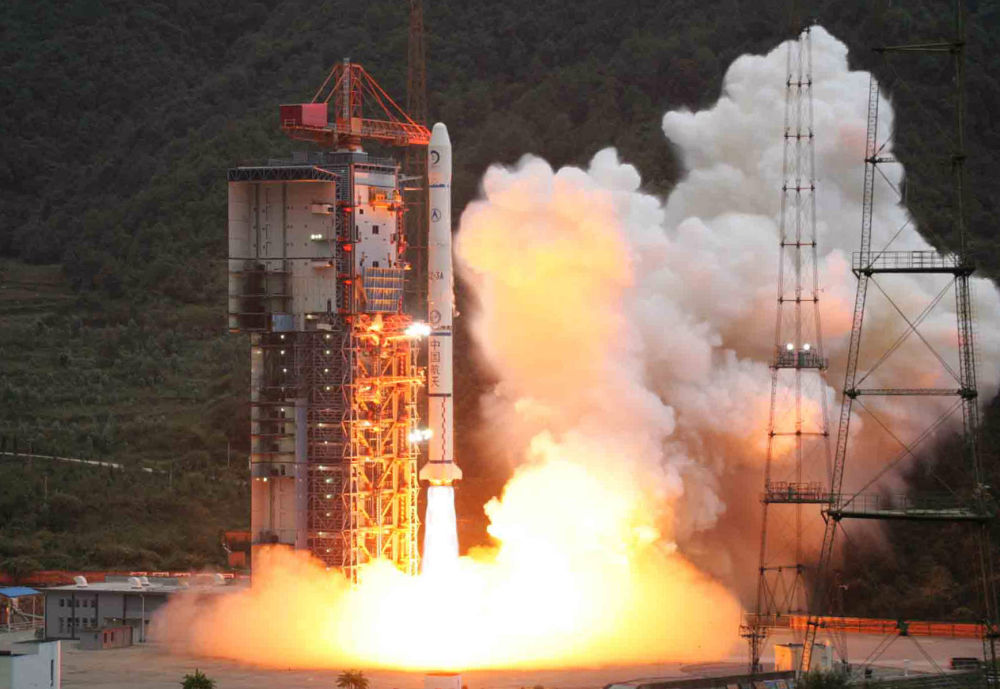 2003年5月25日,我国在西昌卫星发射中心用“长征三号甲”运载火箭,成功地将第三颗“北斗一号”导航定位卫星送入太空。新华社记者 李刚 摄