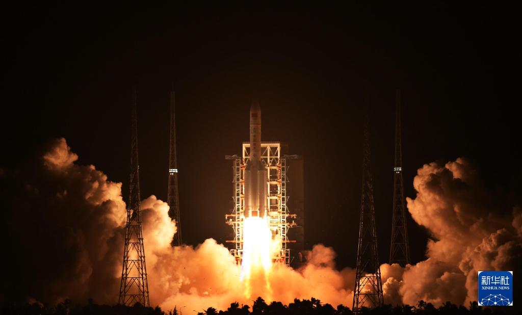 2022年10月31日,搭载空间站梦天实验舱的长征五号B遥四运载火箭,在我国文昌航天发射场准时点火发射,约8分钟后,梦天实验舱与火箭成功分离并准确进入预定轨道,发射任务取得圆满成功。新华社记者 胡智轩 摄