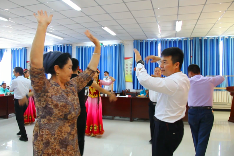当天,15户职工群众身着漂亮的服饰,跳起欢快的麦西来甫迎接来自河南省的亲戚,援疆干部与各自的民族亲戚手拉手话家常、共舞麦西来甫。
