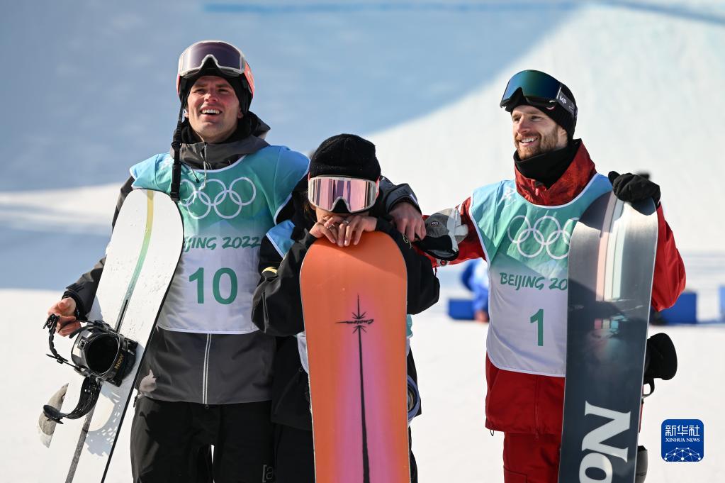 2月15日,中国选手苏翊鸣(中)在比赛后庆祝。新华社记者薛宇舸 摄