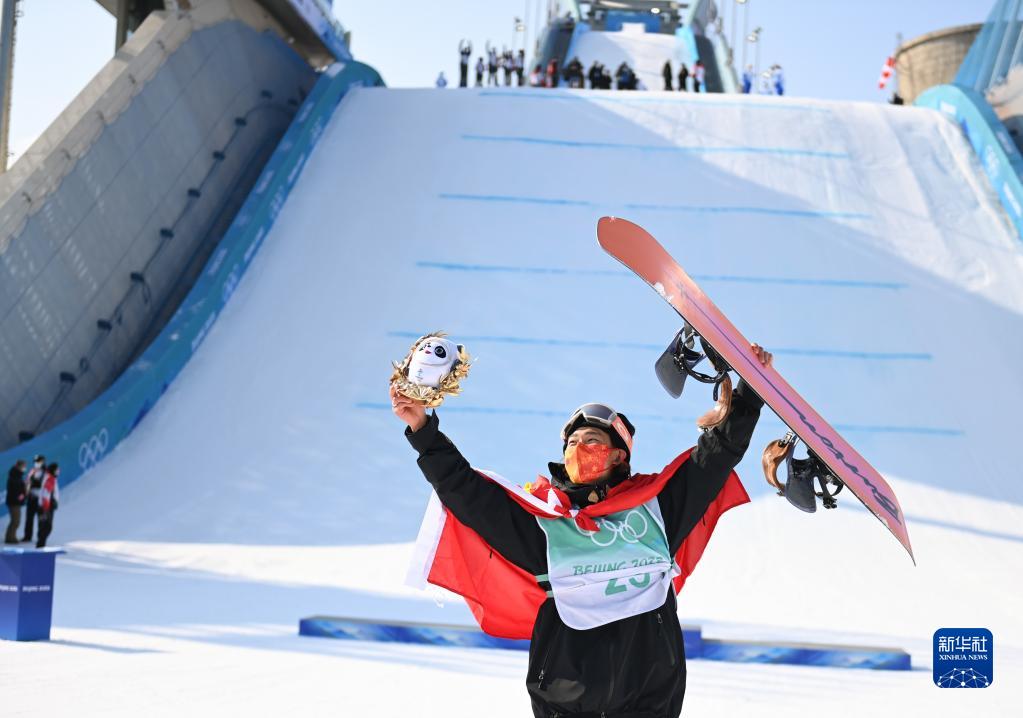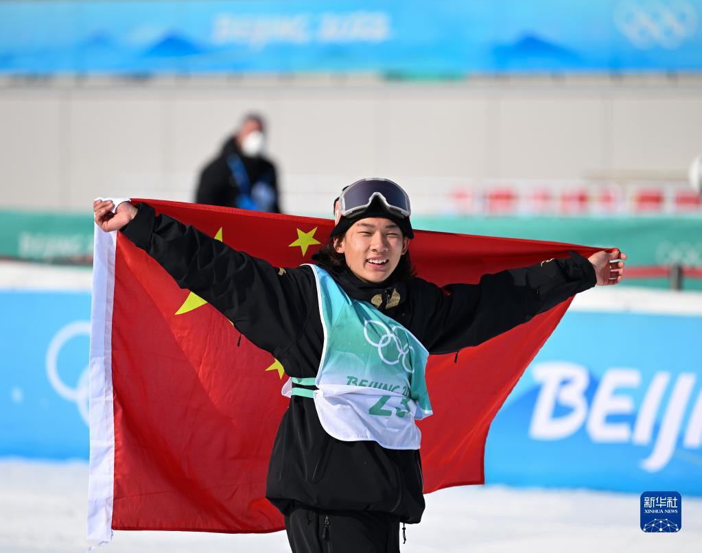 当日,北京2022年冬奥会单板滑雪男子大跳台决赛在北京首钢滑雪大跳台举行。中国选手苏翊鸣夺得金牌。