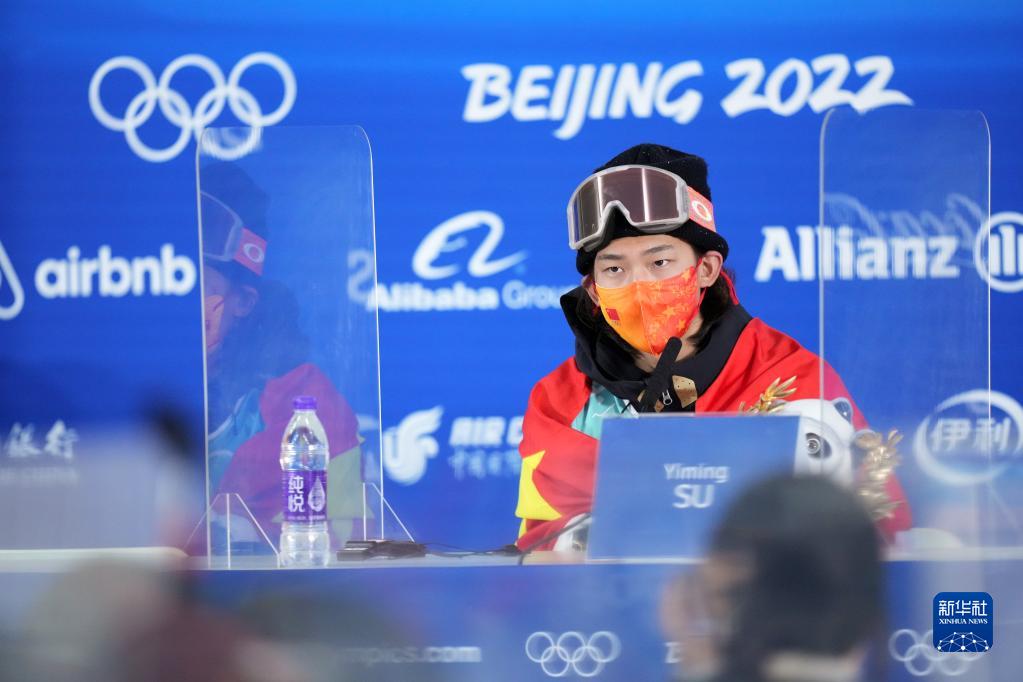 2月15日,中国选手苏翊鸣在新闻发布会上。新华社记者熊琦 摄