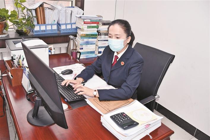 3月15日,张芳在办公室电脑上查阅案件资料。兵团党委政法委 提供