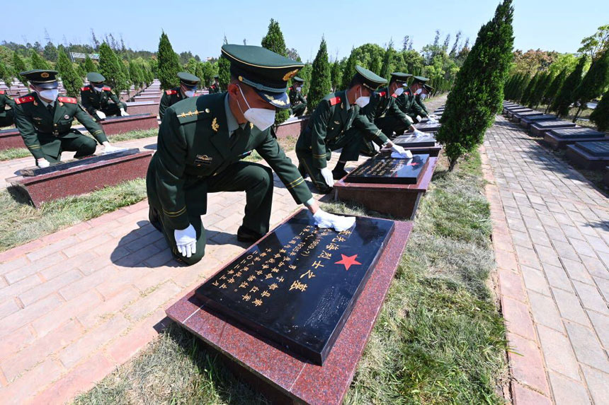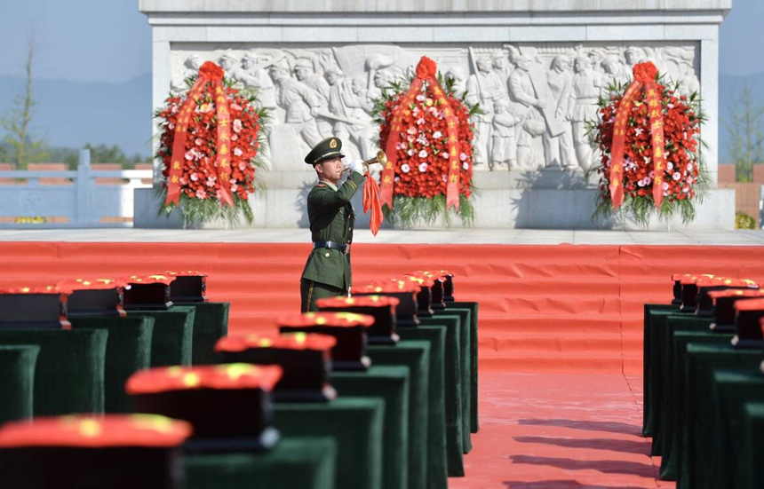 江西省赣州市于都县散葬烈士墓集中迁葬入园仪式在于都烈士纪念园举行。 郭芷汇 摄