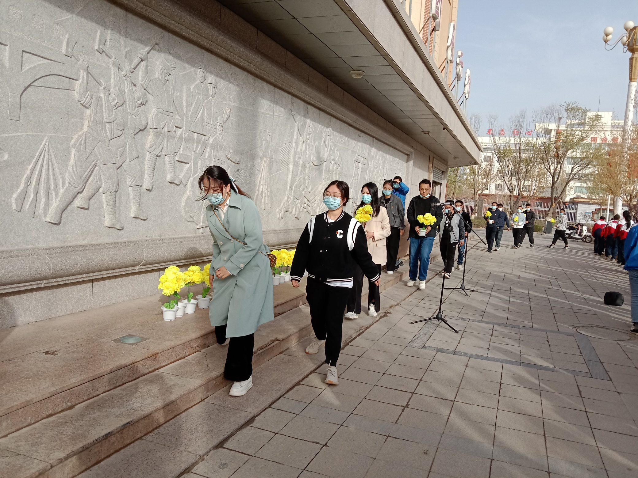 4月2日,一师一团开展“缅怀革命先烈 传承兵团精神”纪念活动,各基层单位宣传委员、西部计划志愿者、团中学学生代表70余人参加纪念活动,感受兵团精神。王利英 摄