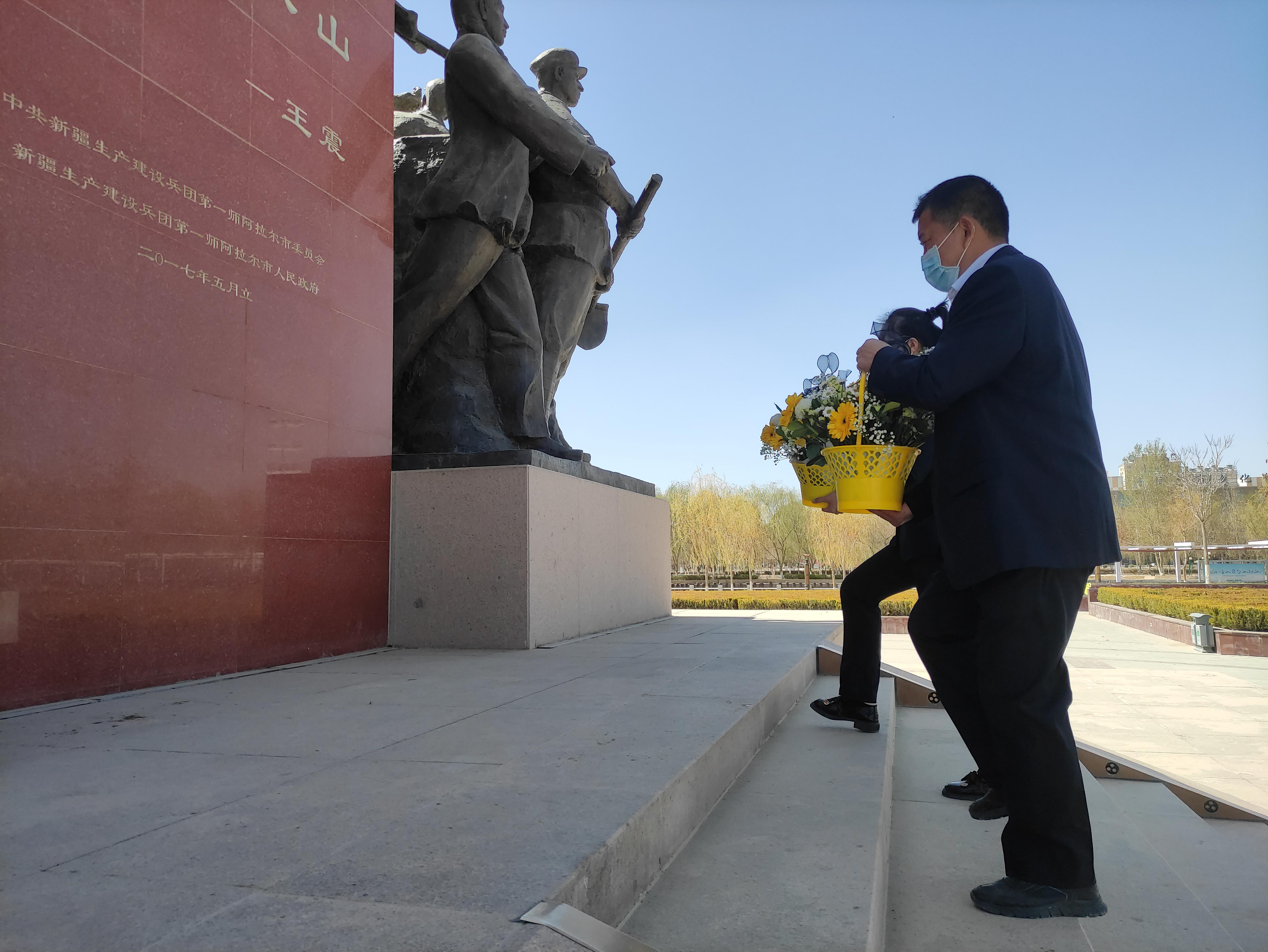 3月30日,一师阿拉尔市绿景园林绿化科技有限公司组织党员干部,到三五九旅屯垦纪念碑前开展“缅怀英烈、牢记使命”主题党日活动。党员们在纪念碑前默哀、敬献花篮、重温入党誓词。官跃志、曹琴 摄