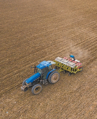 新疆维吾尔自治区博乐市6万亩“免耕玉米”开播。“免耕玉米”不使用地膜,一次性完成播种、施肥、滴灌带浅埋机械化作业,可减少白色污染等。 于苏甫·艾尼 摄(影像中国)