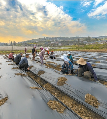 重庆市南川区南平镇,农民正在铺设全生物降解膜。 罗川 摄(人民视觉)