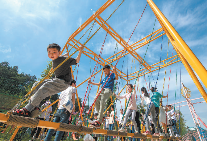 湖南省茶陵县,孩子们在一家研学旅行基地游玩。 胡艳波 摄(影像中国)