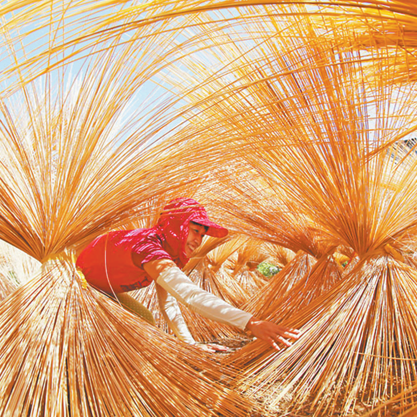 江西省铜鼓县大塅镇大塅村,女工在晾晒竹条。 罗亚毅 摄(影像中国)