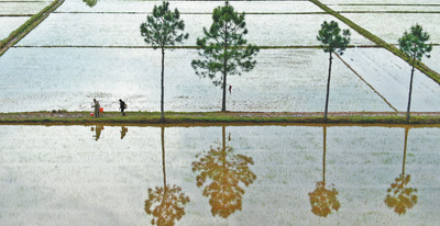 江西省吉安市吉州区长塘镇庙下村,水稻田星罗棋布,犹如一面面镜子。李军 摄(人民视觉)