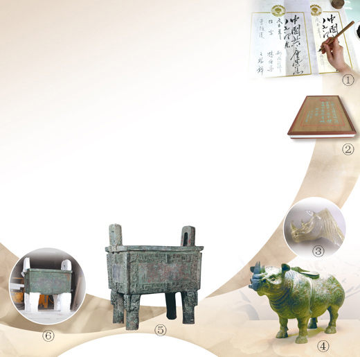 图⑥:硅橡胶翻制后母戊鼎的鼎足及鼎耳范。