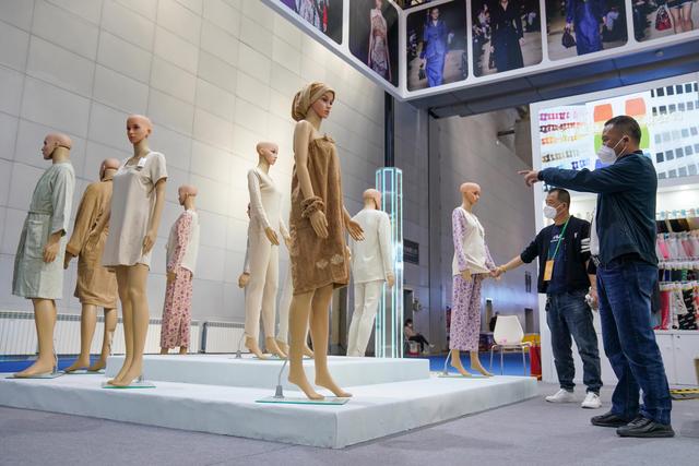 9月21日,在第七届中国-亚欧博览会上,参观者在参观新疆彩棉制品。新华社记者丁磊 摄