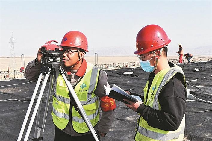 兵团建工集团所属项目部开展导师带徒工作,青年职工(右)在师傅的指导下工作(资料图片)。