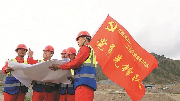 兵团建工集团所属奎屯河引水项目党员突击队充分发挥党员先锋模范和党组织战斗堡垒作用,有效推进各项工作开展(资料图片)。