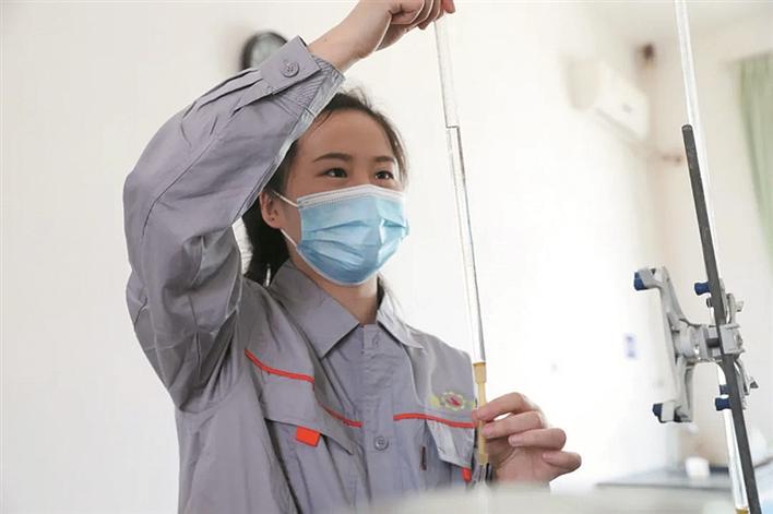 兵团建工雁池梧桐公司值班人员正在做水泥化验(资料图片)。