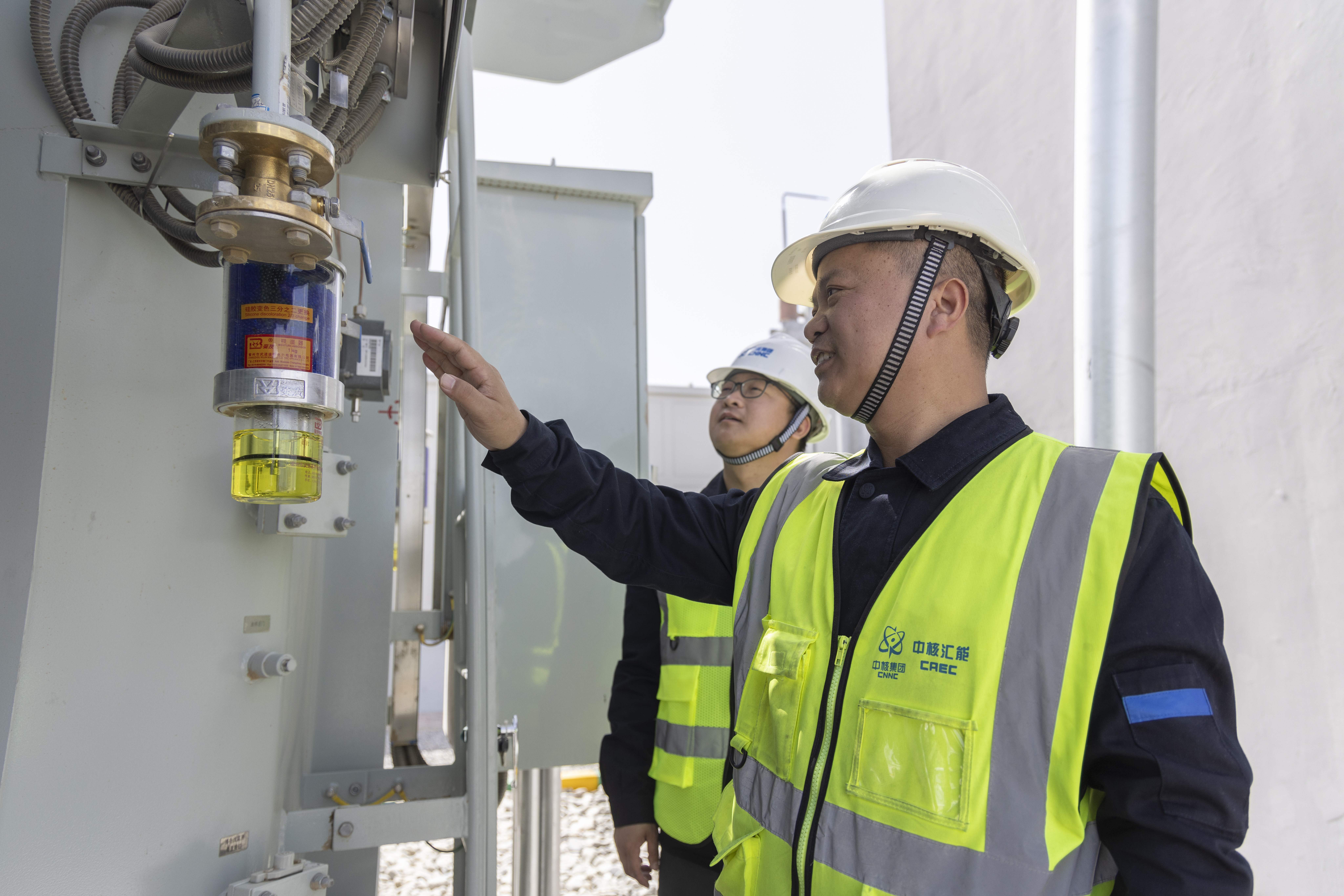 中核铁门关市三十六团200兆瓦风电项目工作人员正在检查电力设备。李嘉成 摄