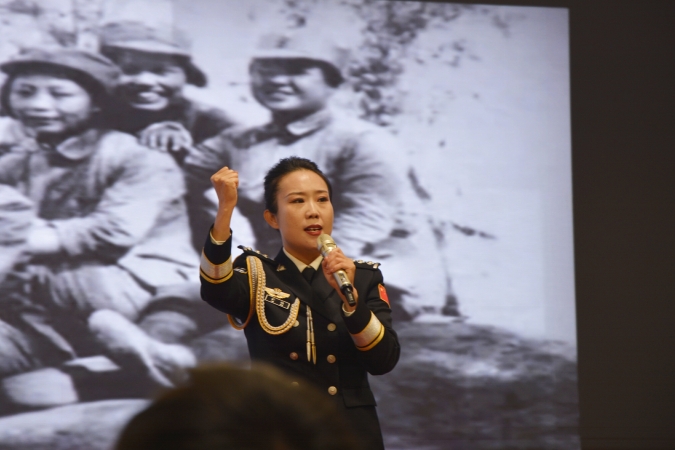 5月29日,兵团监狱系统举行的主题教育红色经典诵读比赛中,科克库勒监狱民警杨婧朗诵《不负巾帼志 热血沃中华》。 兵团日报全媒体记者 陈靖茹 摄