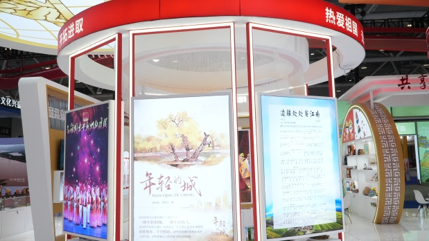 在展区中心区域,兵团创新设置了“兵团好声音”体验区,精心打造“云听优秀经典、感受兵团精神”的现场体验。再往里走,“深入实施文化润疆”几个大字映入眼帘。据介绍,今年兵团展区在设计和布展方面不断创新,加大文化润疆成果的体现度,设置唐王城遗址挖掘最新成果展示,增加文博热、考古热的带入感、体验感。