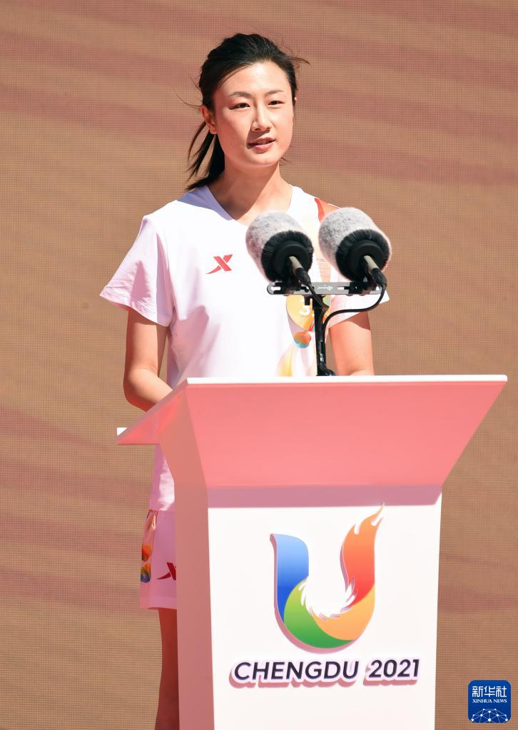6月10日,第一棒火炬手、成都体育学院学生、东京奥运会体操冠军邹敬园在火炬传递中。