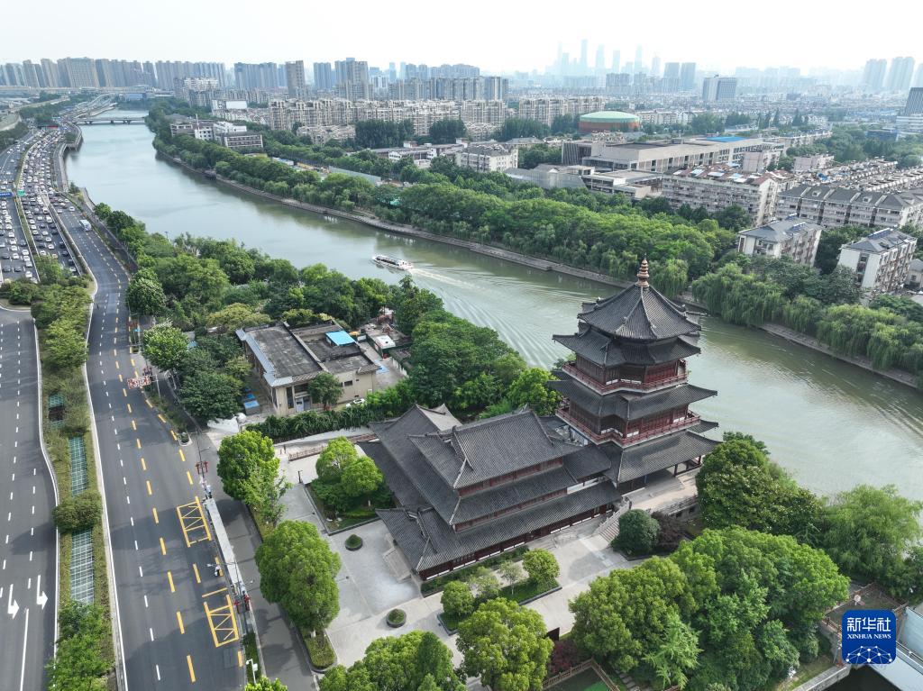 船只行驶在南京赏心亭旁的秦淮河上(6月10日摄,无人机照片)。新华社记者季春鹏 摄