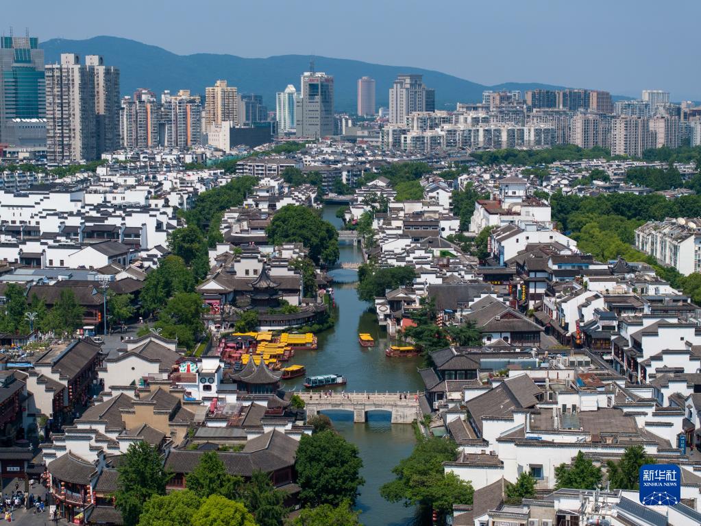 游客在南京夫子庙景区参观游玩(6月12日摄,无人机照片)。新华社记者李博 摄