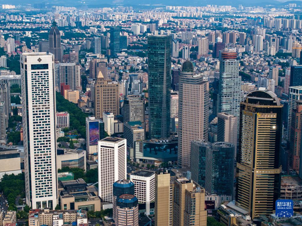南京新街口商圈(6月12日摄,无人机照片)。新华社记者李博 摄