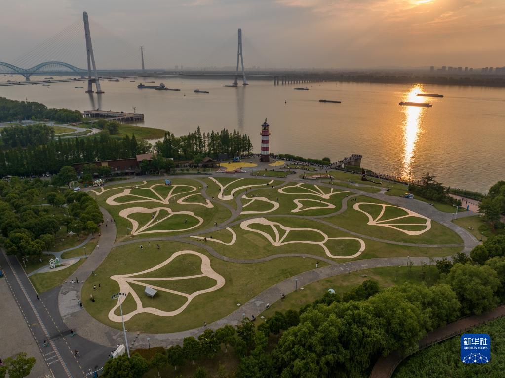 南京鱼嘴湿地公园(6月13日摄,无人机照片)。新华社记者李博 摄